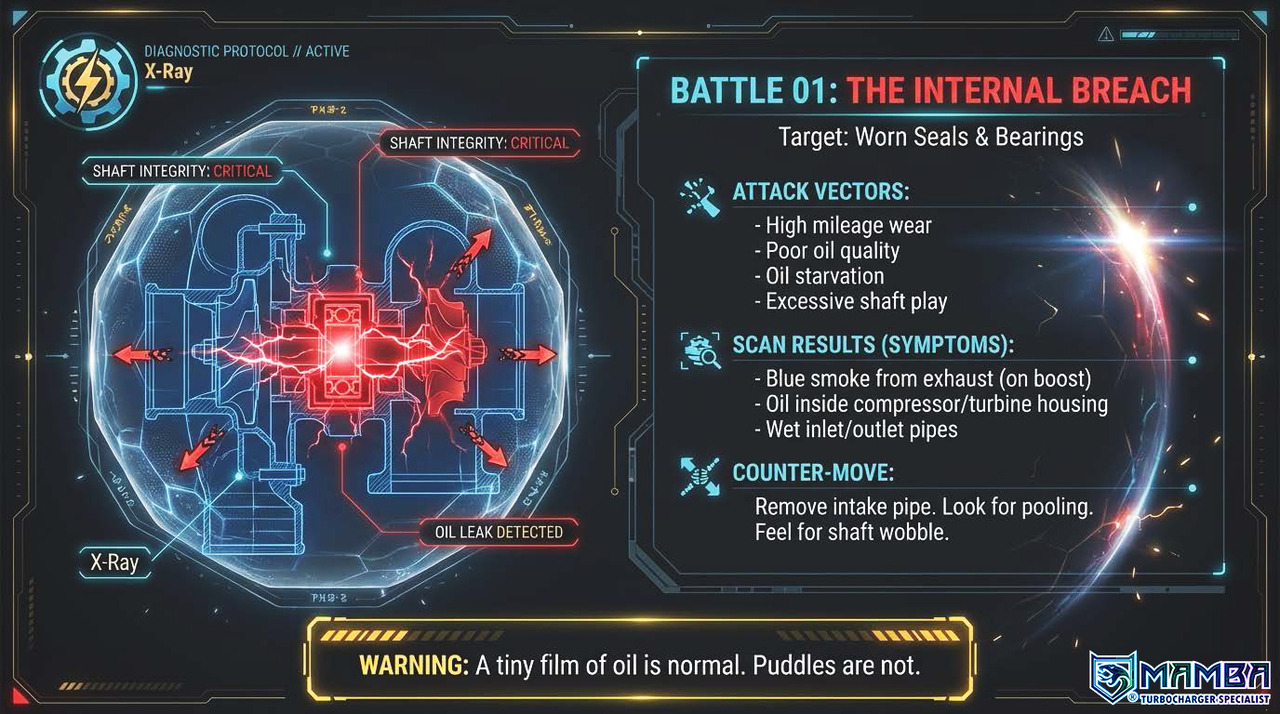 3️Inspect turbo for shaft play & oil inside